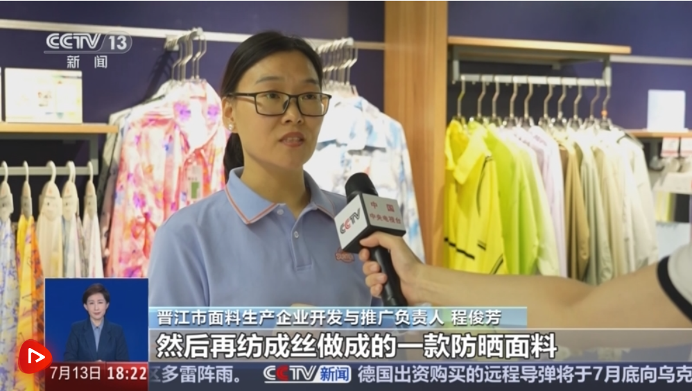入夏以来,各大服装门店都纷纷上新防晒类服饰,各种轻薄、透气、具备紫外线防护功能的防晒衣物销量迅速攀升。销售市场的火爆,也带动了上游供应链产能的加速释放。福建晋江有着完善的服装制造产业链,其中就有不少企业深耕功能性面料多年。