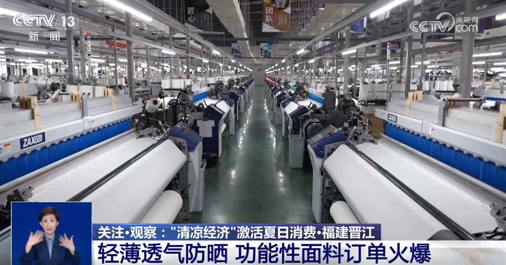 除了旅游消费,盛夏时节,防晒产品也迎来销售旺季。在福建晋江,这里的多家服装生产或纺织面料企业生产的凉感、速干、驱蚊、防晒等功能性面料订单火爆,备受市场青睐。
