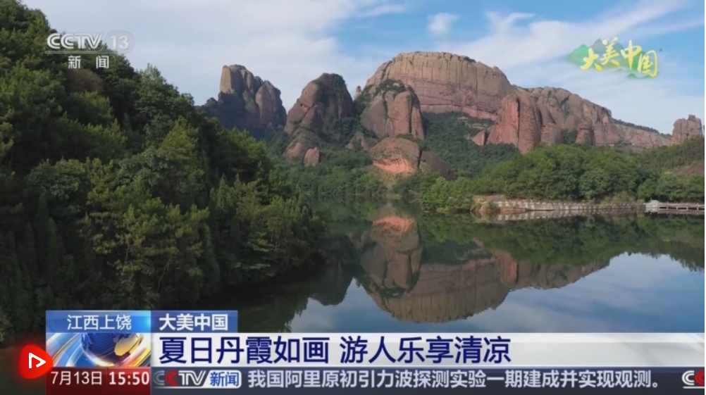 世界自然遗产龟峰位于江西上饶,盛夏时节,这里独特的丹霞地貌与丰富的植被吸引了众多游客前来避暑纳凉。