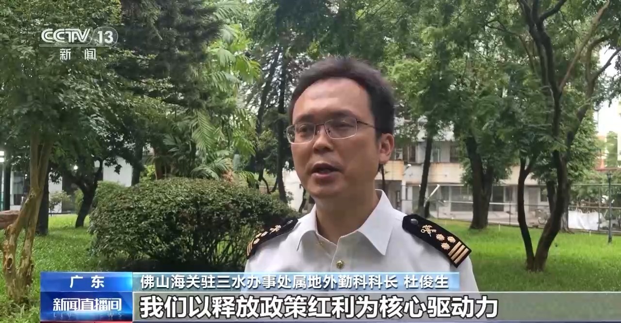 佛山海关驻三水办事处属地外勤科科长 杜俊生:我们以释放政策红利为核心驱动力,为外资企业等各类经营主体营造透明可预期的通关环境,对符合条件的外资企业生产设备、关键原材料等进口环节实施快速验放;积极培育外资企业成为海关AEO企业,也就是高级资信企业,尽享通关便利。