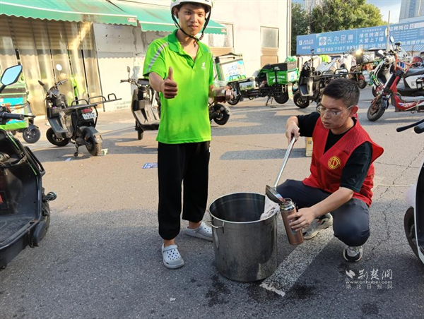 荆楚网(湖北日报网)讯(通讯员 胡晓芝 侯本瑞)近日,武昌区杨园街道余家头社区工会在工会驿站开展“工会携手送清凉,普法惠民暖‘新’人”主题关爱活动,为骑手、快递员等新就业群体送去清凉与关怀。