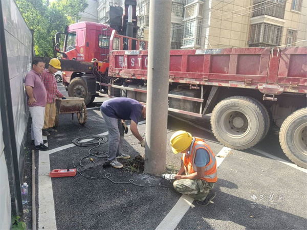 区人大代表、社区书记徐栩随后牵头开起跨部门协调会,积极对接电力、通信、市政等单位核实权属。确认电线杆已彻底废弃后,社区又联系上武汉城建建设工程有限公司巡司河泵站项目部,对方有施工资质,爽快接下了拔杆活儿。7月初,机械进场作业,隐患应声消除,小区路通了,居民心也顺了。