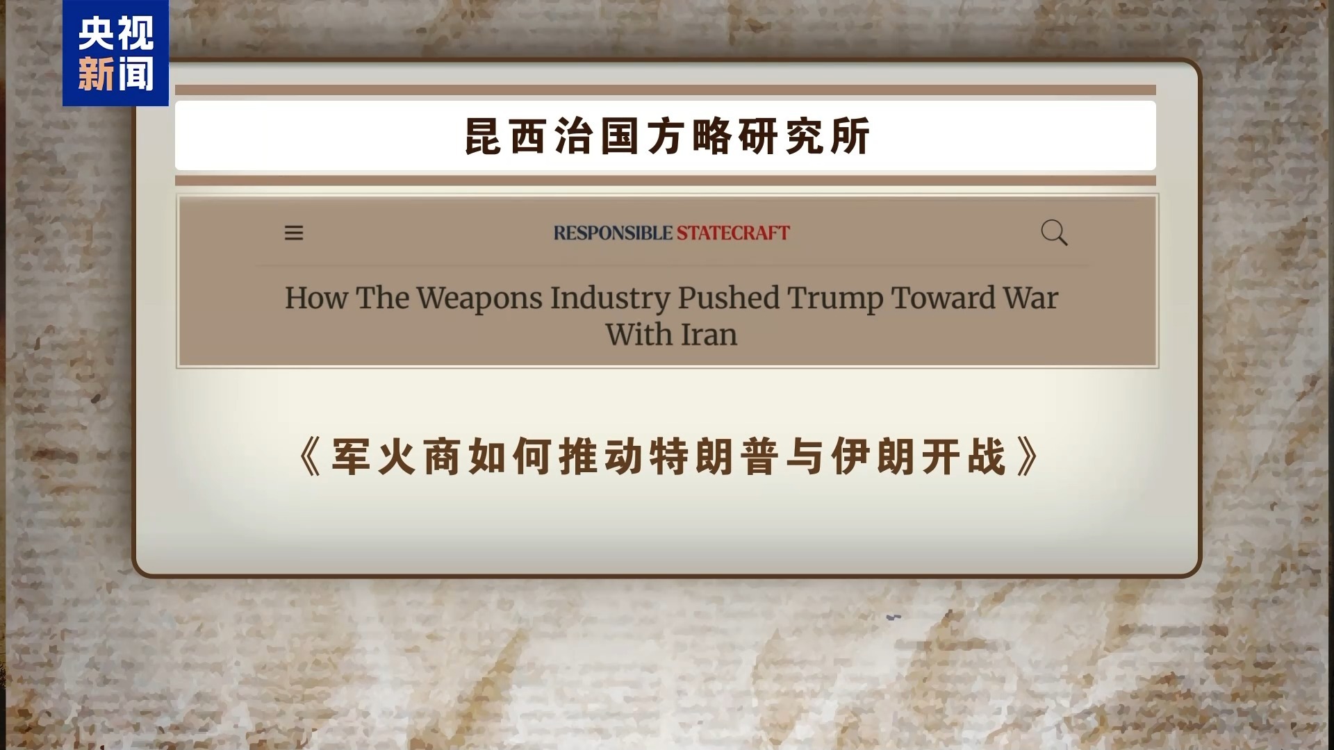 美国智库昆西治国方略研究所近期发表一篇文章,题为《军火商如何推动特朗普与伊朗开战》。文章说,在上个月美国空袭伊朗核设施前,美国一些代表军工企业的嘉宾轮番出现在福克斯新闻节目中,称赞以色列对伊朗的打击行动,并敦促美国进一步介入。而一旦美国和以色列与伊朗爆发战争,这些企业一定将从中获利。