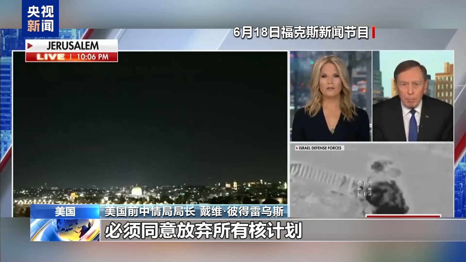 美国前中情局局长 戴维·彼得雷乌斯:特朗普的一种选择,是加大最后通牒的力度,要求伊朗无条件退让。对他们说,必须同意放弃所有核计划,对此绝不会有任何谈判的余地。同时要允许国际原子能机构进行全面核查,否则我们将摧毁福尔多核设施。