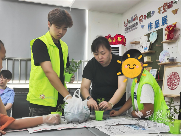 荆楚网(湖北日报网)讯(记者 李燕 实习生 谷盈盈)“老师,这盆草有一股中药味儿。”7月15日下午,青山区冶金现代花园社区的活动室内飘着淡淡的泥土清香,武汉市武东医院儿少心理科团队走进社区,开展“亲近大自然 释放学习压力”园艺心理团体活动。