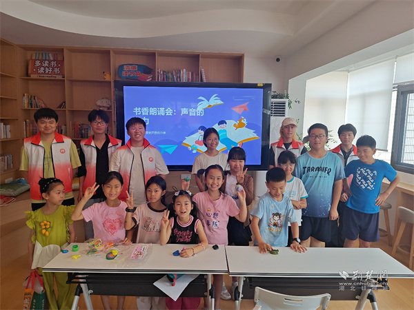 7月15日,读书社区黄鹤书房里,“书香朗诵会”活动正如火如荼地进行。武汉理工大学创业学院的志愿者们通过朗诵视频赏析,带领孩子们感受语言艺术的魅力。“注意语速的变化,读到激昂处可以适当加快……”随后,在志愿者的引导下,小朋友们纷纷踊跃上台,朗诵经典诗词篇目,在实践中掌握发音、节奏、神态等基本朗诵技巧,理解文字背后的文化内涵,现场学习氛围浓厚。