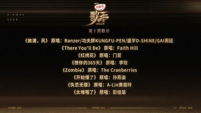 7月16日晚,@湖南卫视歌手 发布第十期悬念歌单: