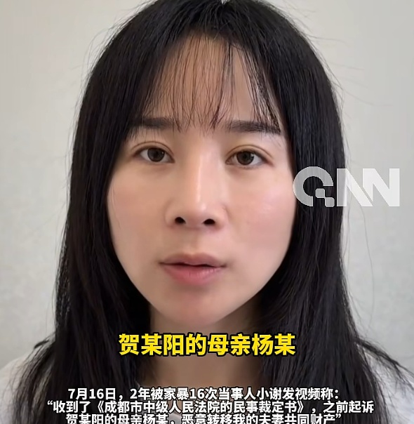 谢女士和贺某阳于2024年6月离婚。同年12月,贺某阳被控故意伤害罪、虐待罪一案宣判,执行有期徒刑11年。此外,判处贺某阳赔偿金额共计37万余元。