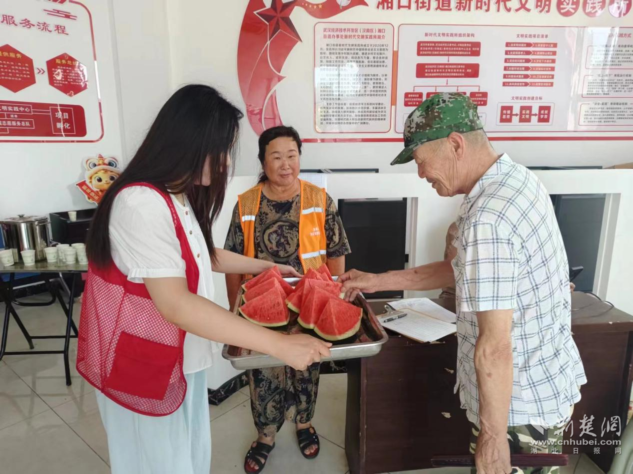 荆楚网(湖北日报网)讯(通讯员 吴垠)7月18日,武汉经开区湘口街道康泰路社区开展便民开放日活动,通过多元化的便民服务与温情关怀,为辖区居民尤其是老年群体和户外工作者送去夏日清凉与便利,用实实在在的服务绘就了一幅党群同心、邻里互助的生动图景。