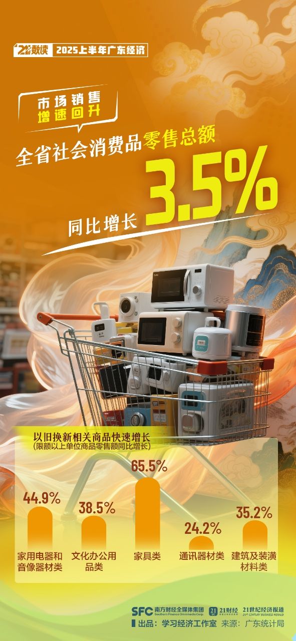 广东是超大规模供给市场,也是超大规模消费市场、超大规模要素市场。各类新消费在广东的双位数增长,从需求端体现出广东动能焕新的趋势——广东正以新消费与新型经济形态深度结合,通过创造新供给引领新需求,从而推动产业升级带动收入增长。