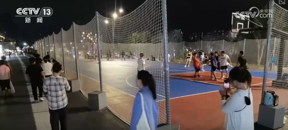 在通州区大运河岸边,那里上新了不少免费的夜间文体休闲项目。