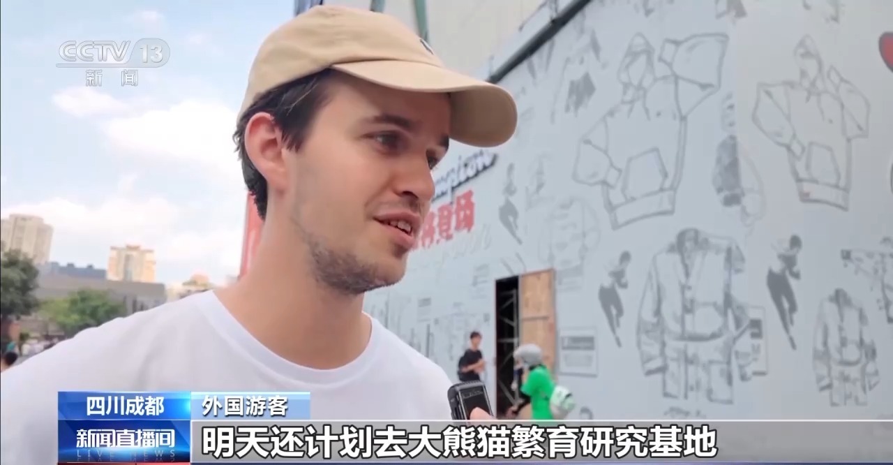外国游客:在这儿肯定要做的事就是吃火锅,我们会去尝尝火锅,明天还计划去大熊猫繁育研究基地,真的特别期待,第一印象太棒了。