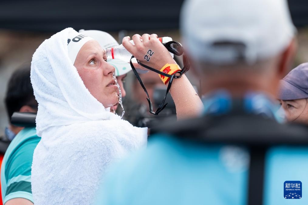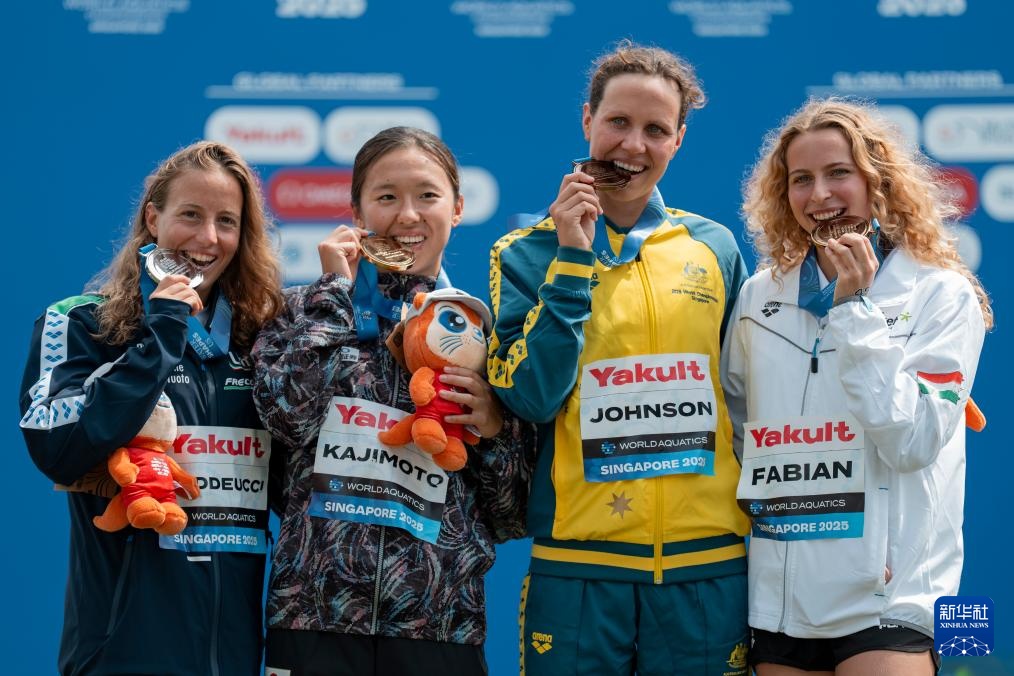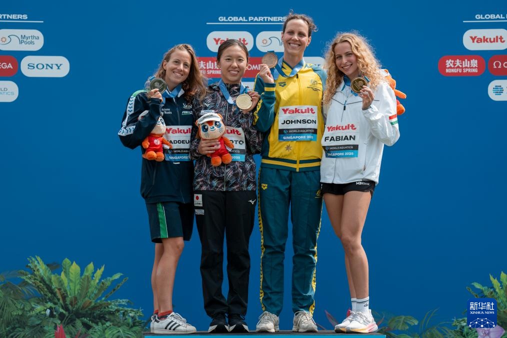 当日,2025年世界游泳锦标赛公开水域女子3公里冲刺赛在新加坡举行。