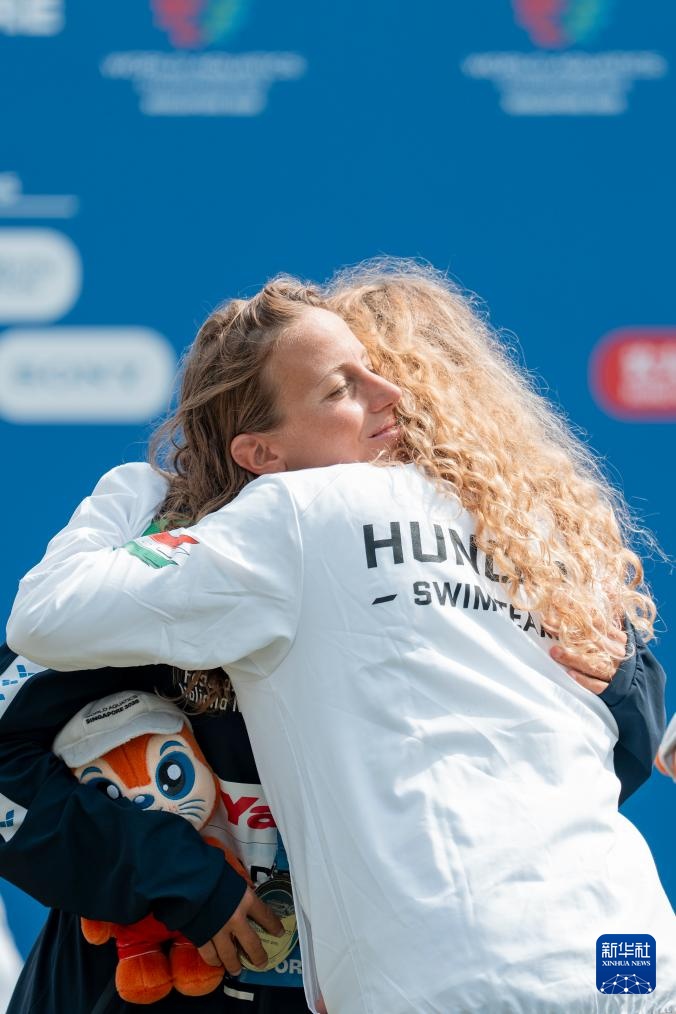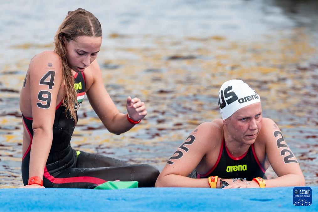 7月19日,匈牙利选手法比安(左)和澳大利亚选手约翰逊在比赛后,她们最终并列季军。新华社记者 伍志尊 摄