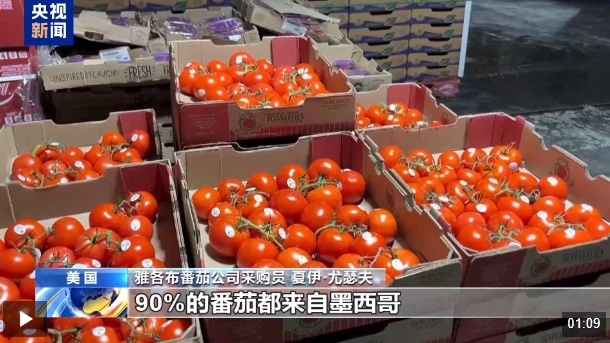 美国纽约市大型农产品经销商雅各布番茄公司的采购员夏伊·尤瑟夫直言:“我们90%的番茄都来自墨西哥。现在有了美国政府加征的关税,我们有点不知道未来会是什么样了。美国种不出足量的番茄来供应自身。美国政府的想法很不现实,这里的劳动力成本太高了。”