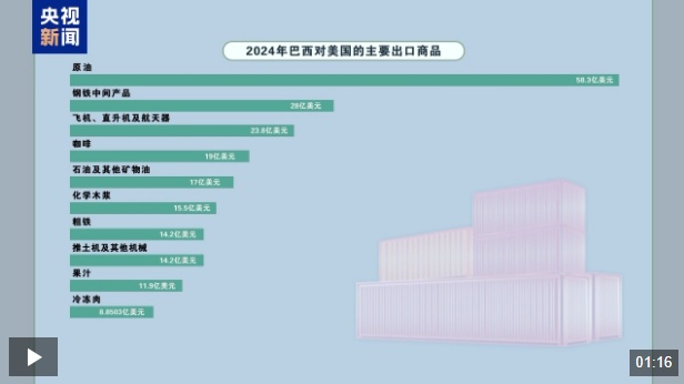 美国有线电视新闻网报道称,2024年,巴西向美国出口了总额高达404亿美元的商品。其中日常食物除了冻肉,还有咖啡和果汁。美国人喝的咖啡大约三分之一来自巴西。美国市场上销售的橙汁,超过一半也来自巴西。对巴西商品征收高关税,将推高美国消费者的生活成本。