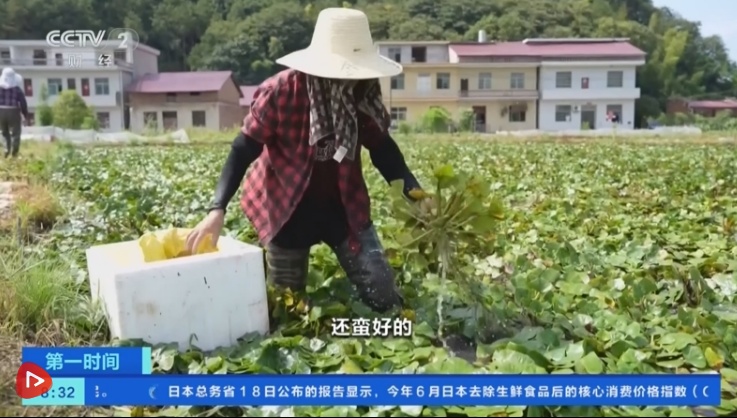 箬坑村种植的“大青菱”从7月初开采,采摘期持续到11月中旬,亩产约2000斤,高峰期每天可采摘1.5万斤,预计全年总产量超200万斤。