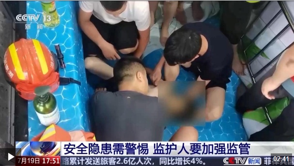 近日,湖南株洲攸县一购物中心的泳池内,一名男孩不慎被卡住腿部,急需救助。男孩亲友和泳池工作人员用挡板将池水分离,避免因行动受阻而呛水,留出一片较为开阔的操作空间。消防救援人员到达时看见,男孩的左腿被泳池墙边的排水口紧紧卡住,大腿被管道牢牢卡死无法动弹,但好在其意识清醒。