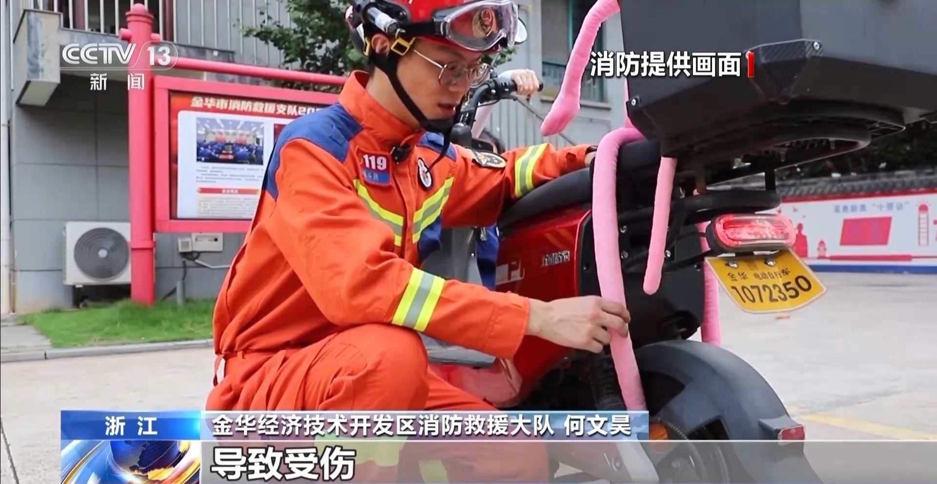 金华经济技术开发区消防救援大队何文昊:许多儿童在乘坐电动自行车时,会有一个习惯性的动作,就是晃动双脚,由于儿童的脚部比较纤细,这种行为容易导致儿童的腿脚卷入后轮受伤。
