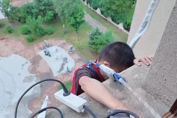 紧接着,他们就遇到了更大的麻烦,东北很多楼房的外墙没有预留空调机位。杨继乾需要用安全绳绑住自己,在空中打孔、安装空调架。这户人家位于12楼,长时间的悬空,让他有点使不上劲儿,安装起来也更费时。