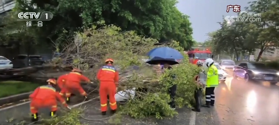 广东江门:强风吹倒大树 消防紧急救出被砸女子