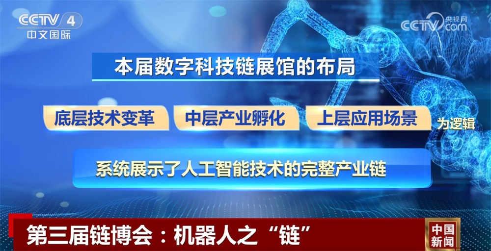 正在进行的第三届链博会上,各路身怀绝技的机器人展示了多种场景下的最新应用,吸引不少人的目光。7月20日,我们就跟随记者镜头去“数字科技链”看一看:支撑机器人“十八般武艺”的究竟是一条什么样的产业链?