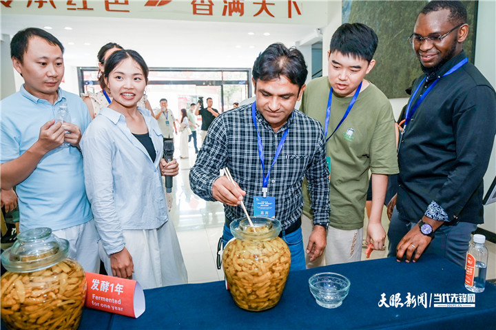 海外学者阿里在遵义品尝不同风味的发酵型辣椒