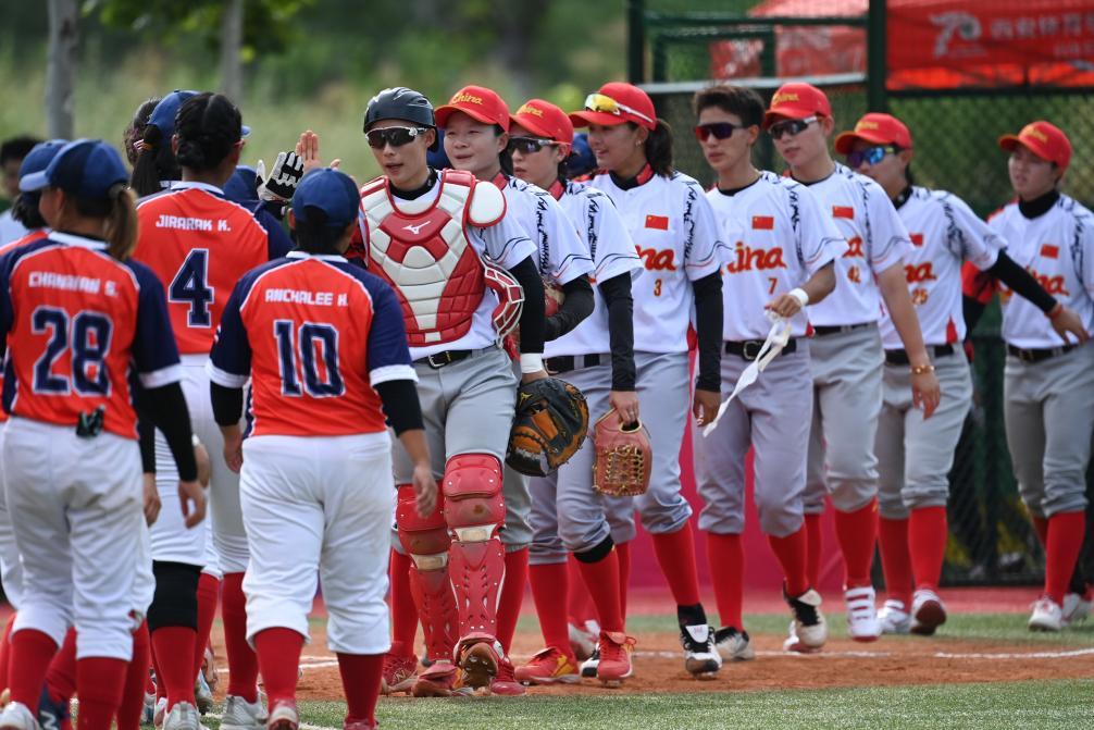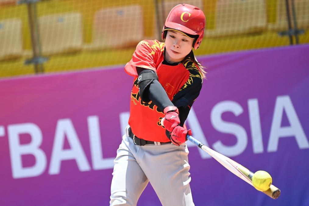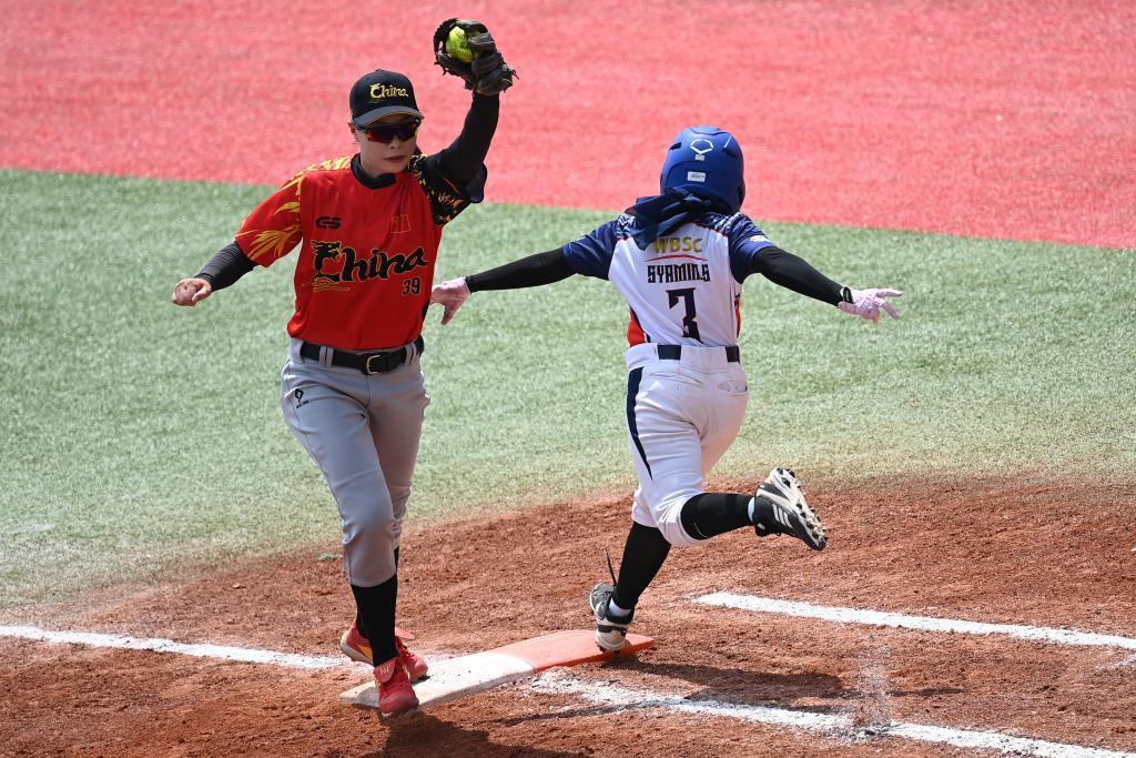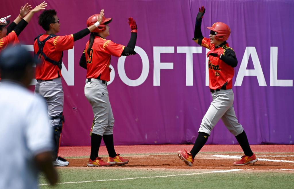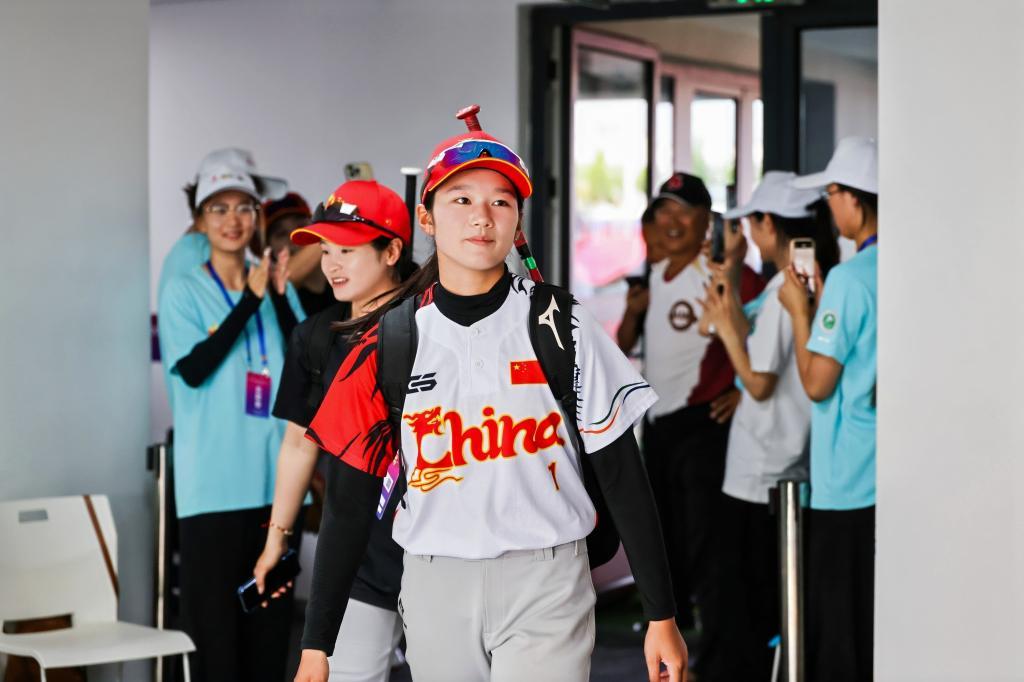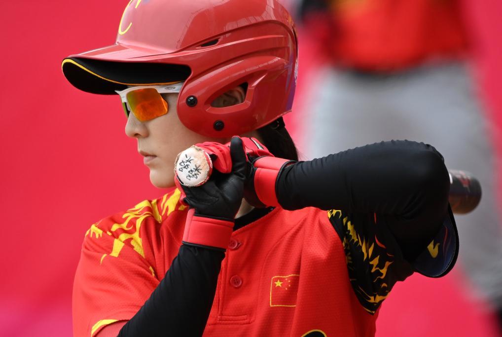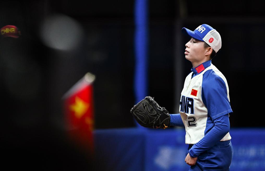 7月15日,中国队球员魏语辰在比赛中投球。新华社记者 邹竞一 摄