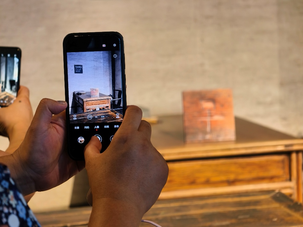 2025年7月15日,暑期研学团小朋友在浙江省绍兴市三味书屋拍摄鲁迅读书座位及课桌上的“早”字。受访者供图