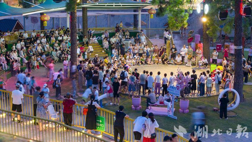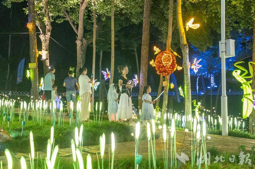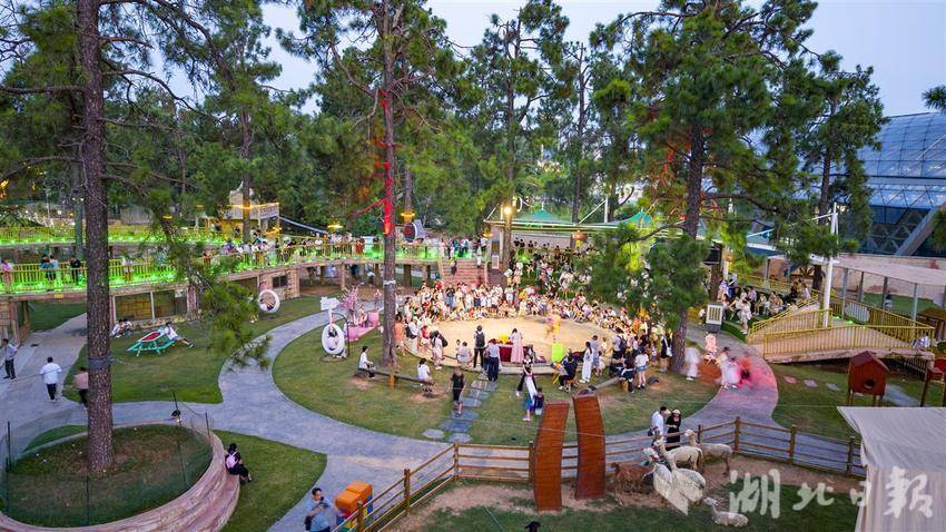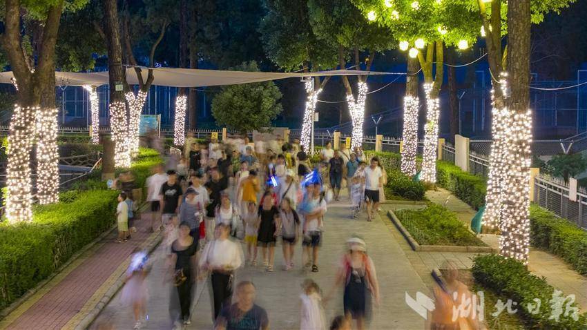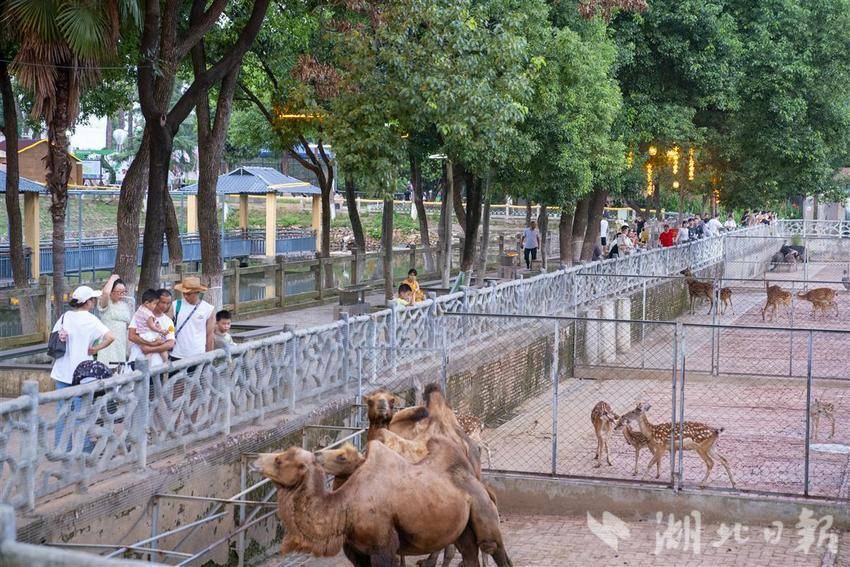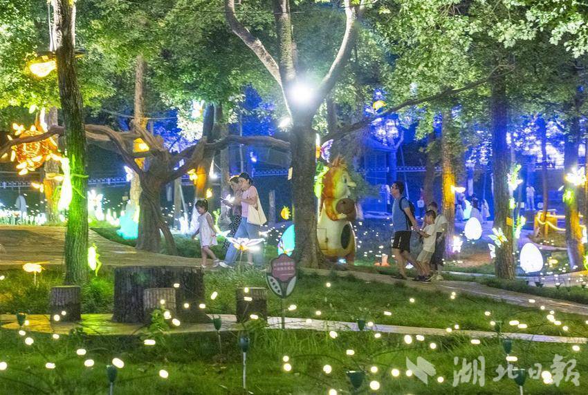 7月19日傍晚,武汉九峰森林动物园,游客在光影绚丽的园区与小动物互动、游玩,欣赏奇幻光影秀。近日,该园开启“光影奇幻夜”暑期夜游活动,凭借独特的生态资源与创新的夜间体验,持续吸引市民游客前来打卡。夜幕降临,压轴的极光夜宴将全场氛围推向高潮。园区化身为光影构筑的“梦幻空间”,极光特效交织出如梦似幻的场景。漫步园区,昆虫秘境五彩斑斓的灯光与仿生昆虫装置交织,游客穿梭其中,宛若置身童话森林。今年盛夏,江城盛夏热浪翻涌,多元化的夜间活动为市民游客打造出层次丰富的惠民消夏体验。