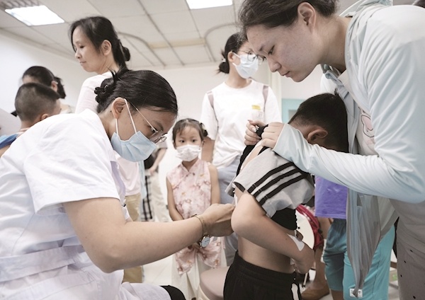 在各家医院的敷贴现场,儿童成为绝对主力。