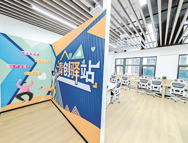 “入驻不到半年,就碰到了许多做新媒体的同行,大家能够一起交流学习。” 23岁的青年创业者王思其的办公桌上,摊着刚打印的新媒体运营策划案。作为一名刚起步的自媒体创业者,她最看重公寓一楼的青创驿站——免费提供的办公工位、高速 WiFi 和会议室,帮她省下了初期租赁办公室的成本。