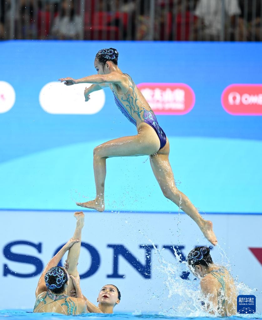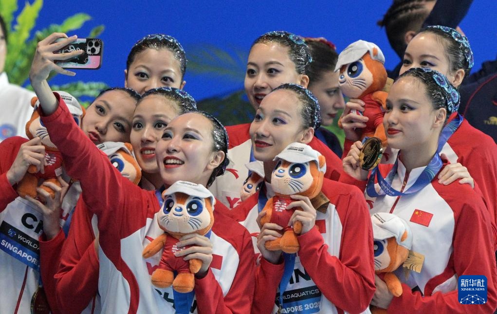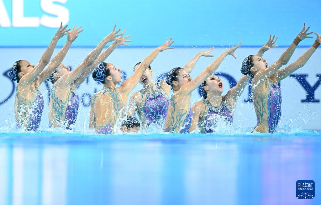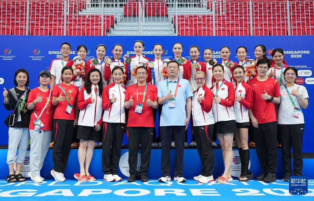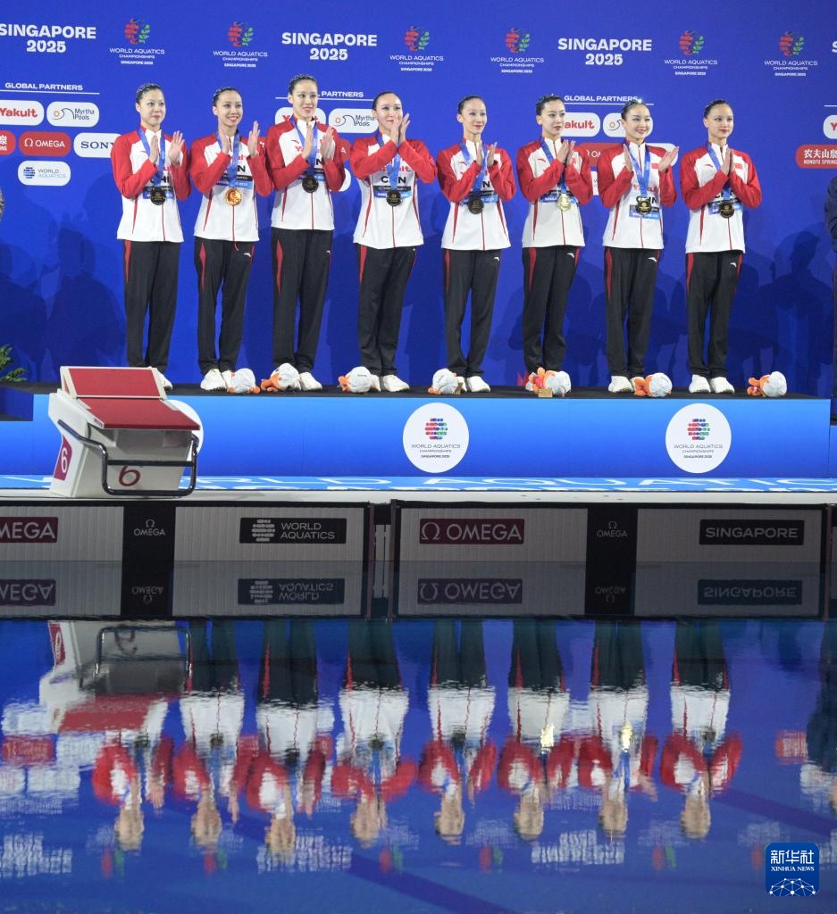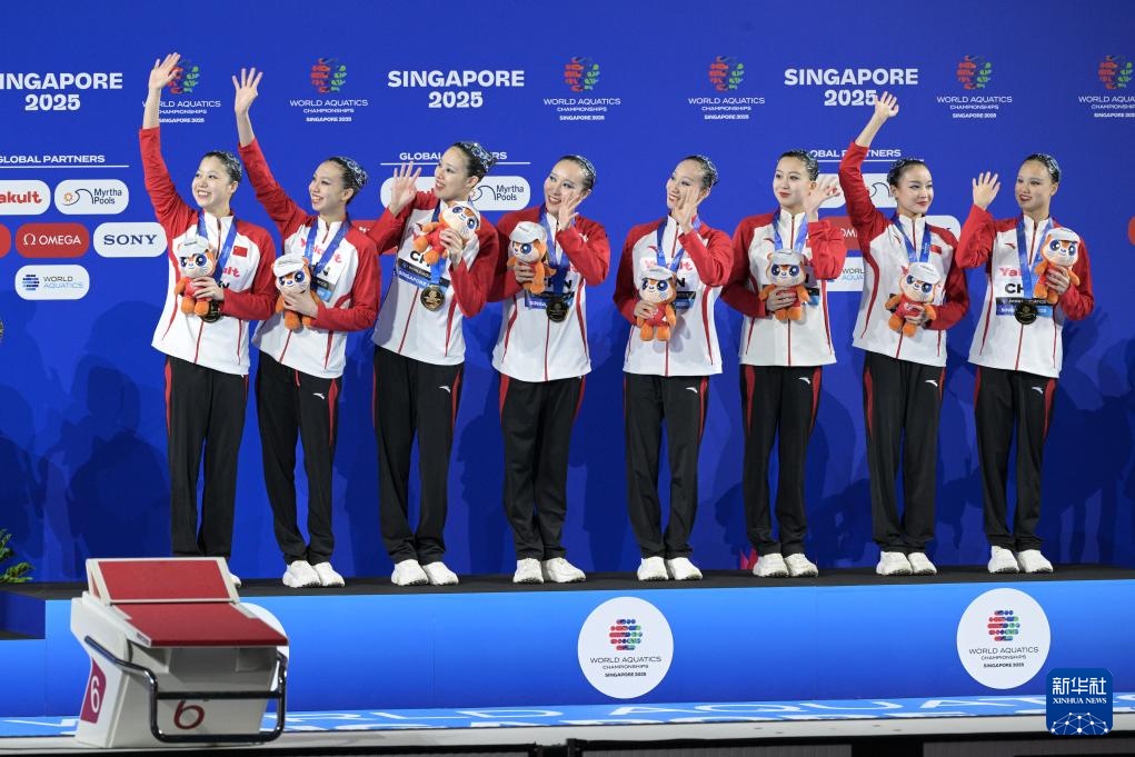 当日,在新加坡举行的2025年世界游泳锦标赛花样游泳集体自由自选决赛中,中国队获得冠军。