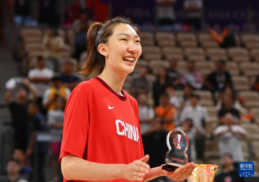 7月20日,入选本届女篮亚洲杯最佳阵容的中国队球员韩旭在颁奖仪式上。新华社记者 肖恩楠 摄