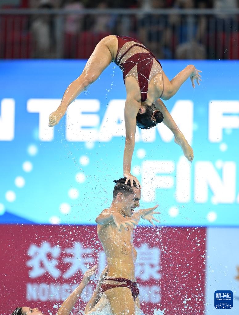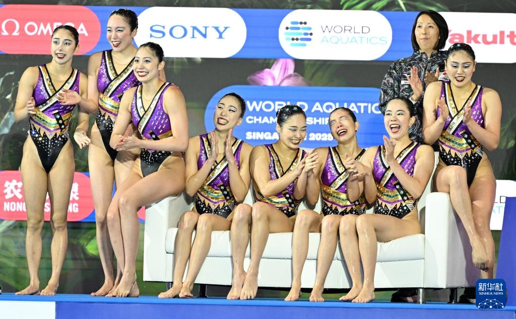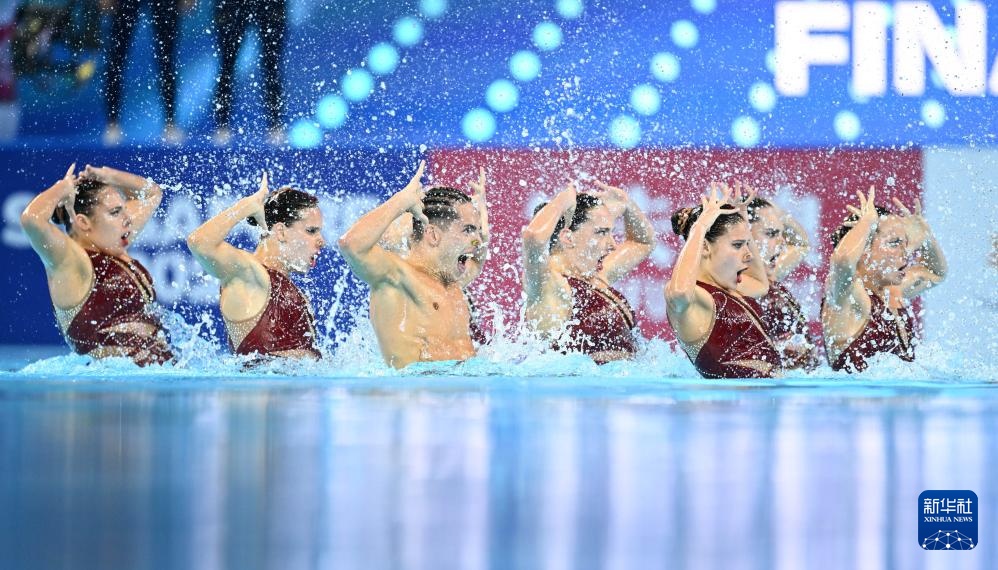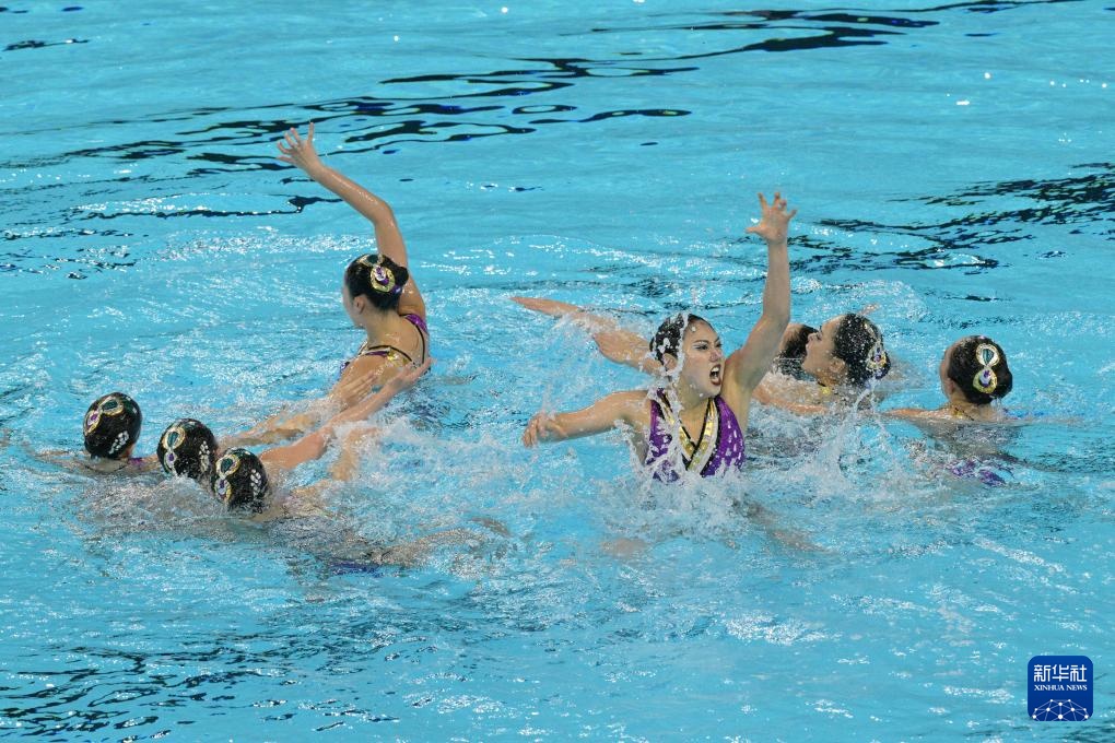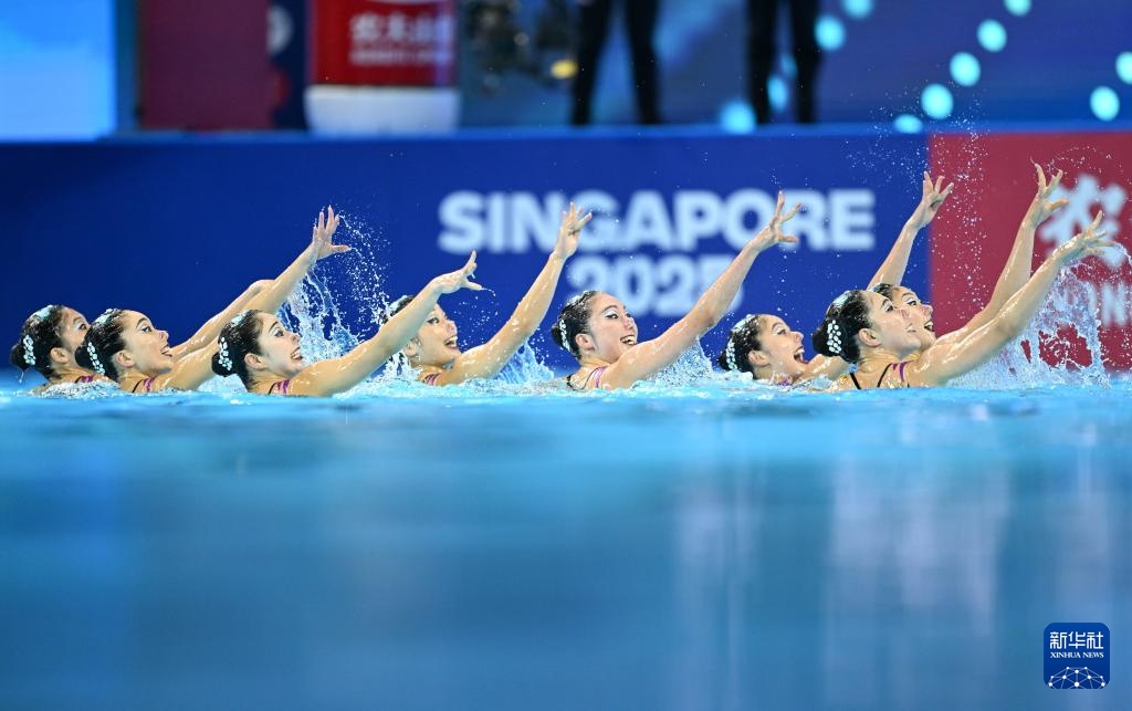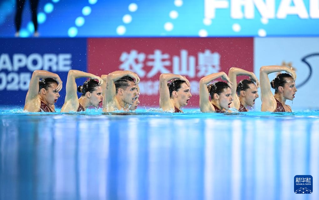 当日,2025年世界游泳锦标赛花样游泳集体自由自选决赛在新加坡举行。
