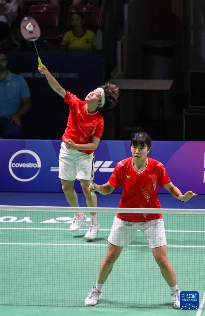 7月20日,中国队组合刘嘉悦(左)/王漪朵在女双比赛中。新华社记者 张帆 摄