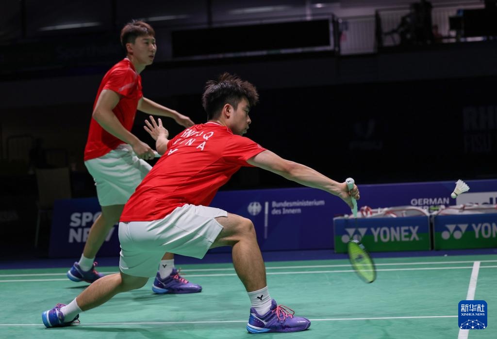 7月20日,中国队组合崔赫宸/彭建钦(左)在男双比赛中。新华社记者 张帆 摄