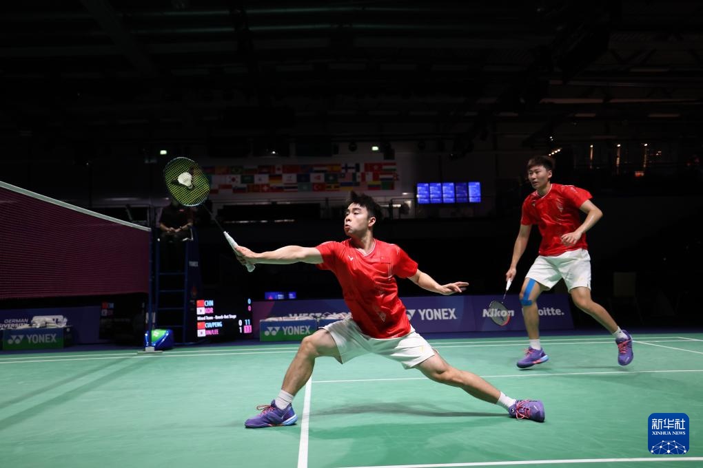 7月20日,中国队组合崔赫宸/彭建钦(右)在男双比赛中。新华社记者 张帆 摄