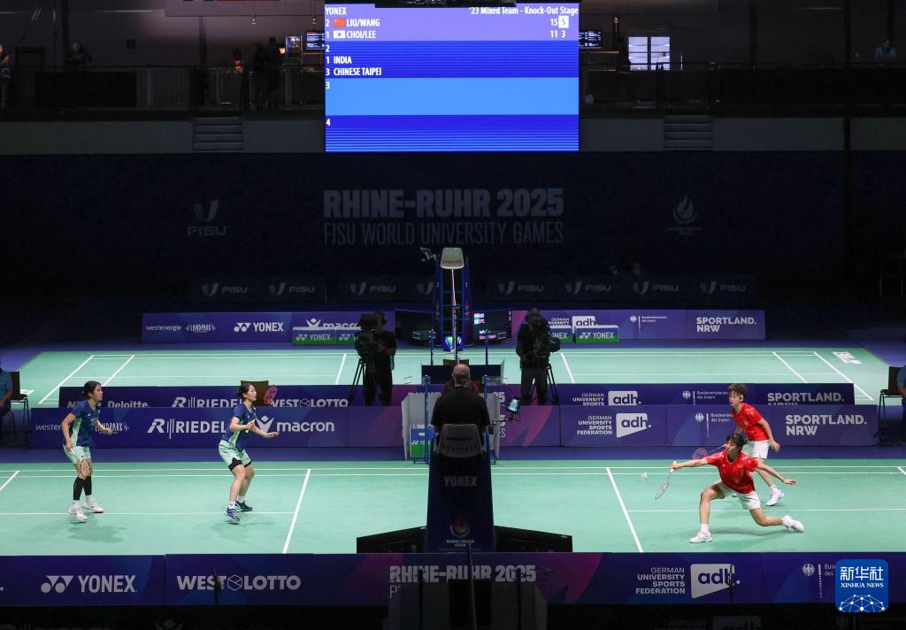 当日,在德国鲁尔河畔米尔海姆进行的2025年莱茵-鲁尔世界大学生夏季运动会羽毛球混合团体半决赛中,中国队3比1战胜韩国队,晋级决赛。