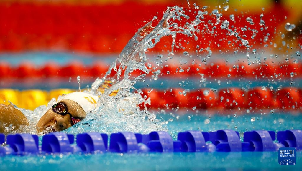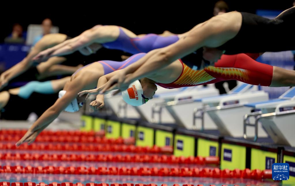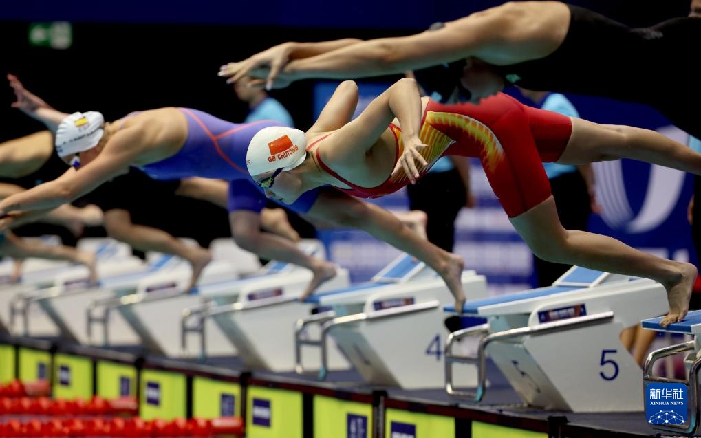 7月20日,葛楚彤在比赛中入水。新华社记者 李颖 摄