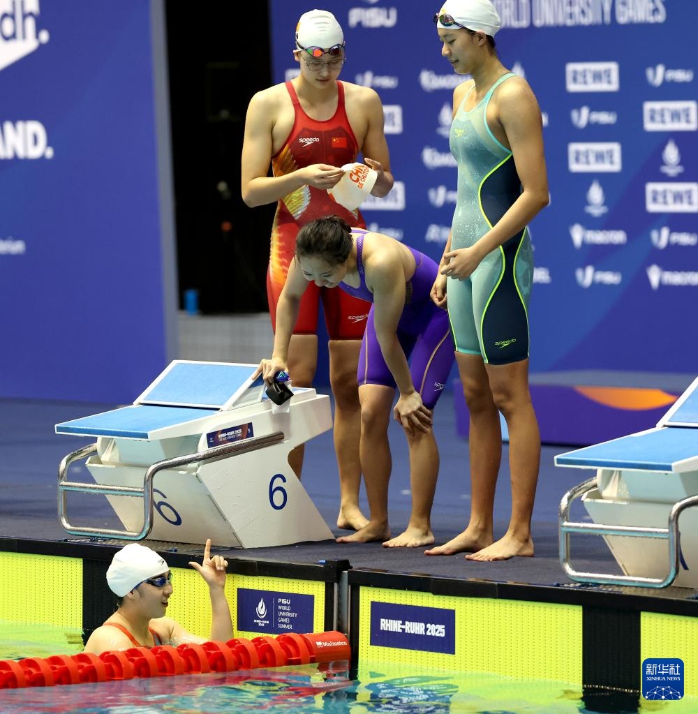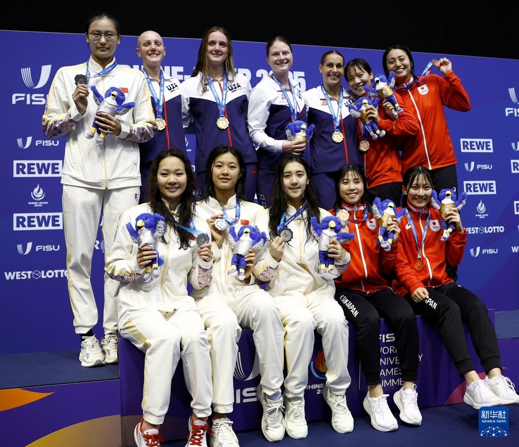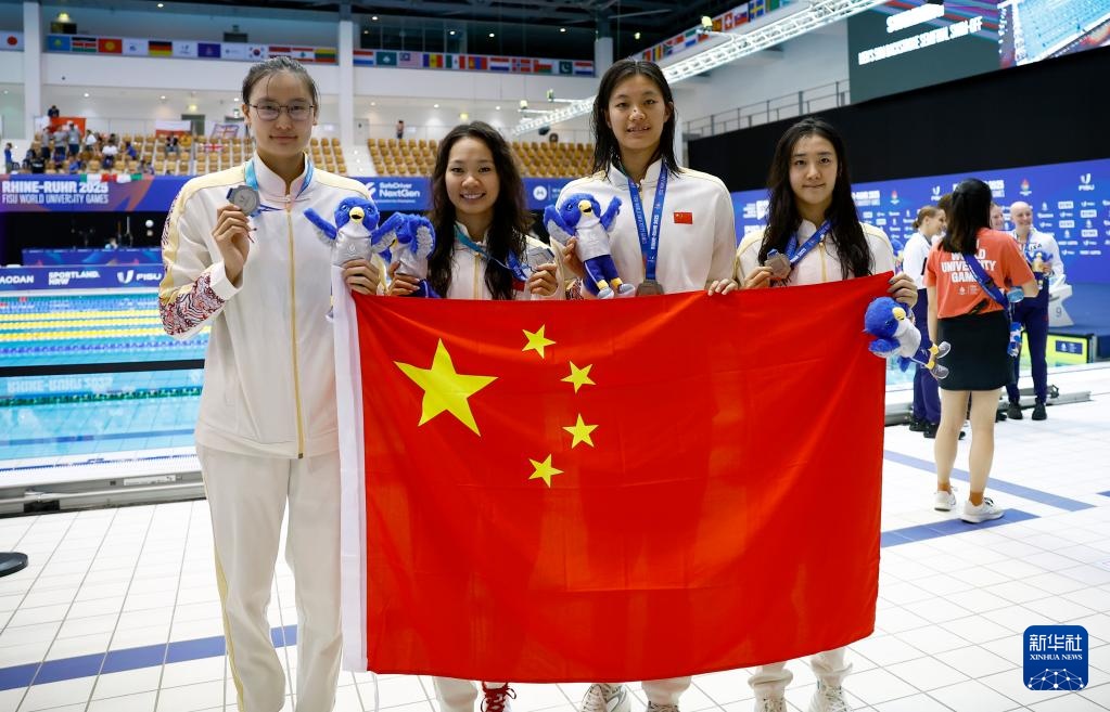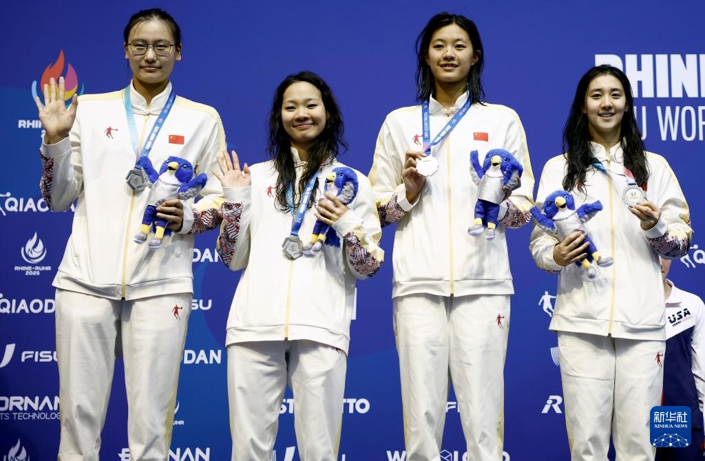 当日,在德国柏林举行的2025年莱茵-鲁尔世界大学生夏季运动会游泳女子4X200米自由泳接力决赛中,由葛楚彤、俞李妍、刘姝含、艾衍含组成的中国队获得银牌。