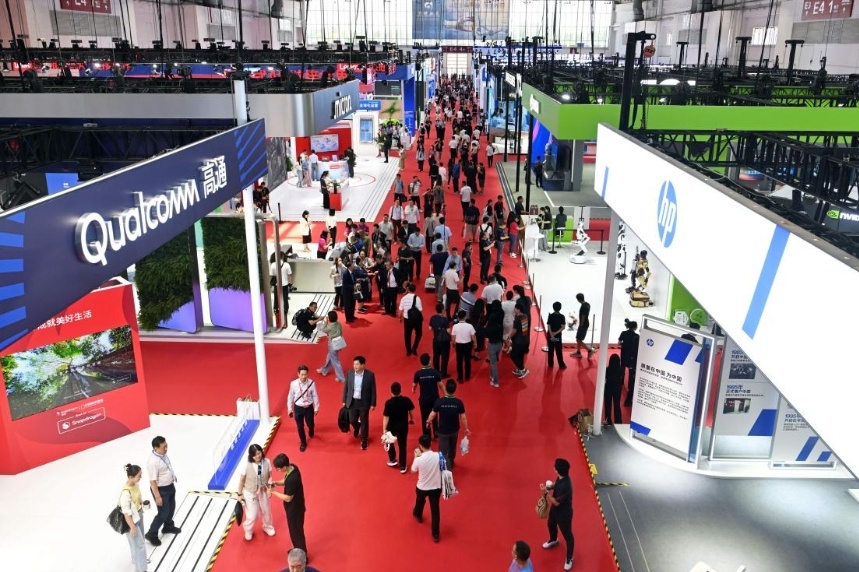 7月17日,数字科技链展区人头攒动。人民网记者 翁奇羽摄