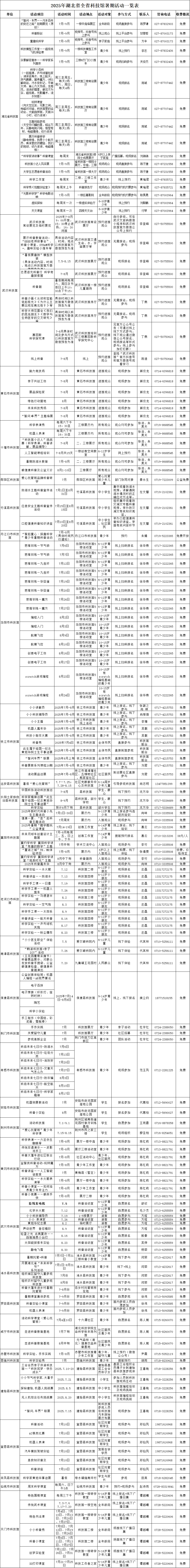 为了方便查询,该馆现已形成《2025年湖北省全省科技馆暑期活动一览表》。