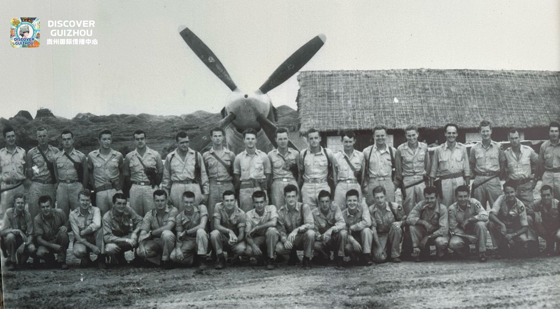 “飞虎队”队员在黄平旧州机场合影。(图/黄平旧州机场提供)