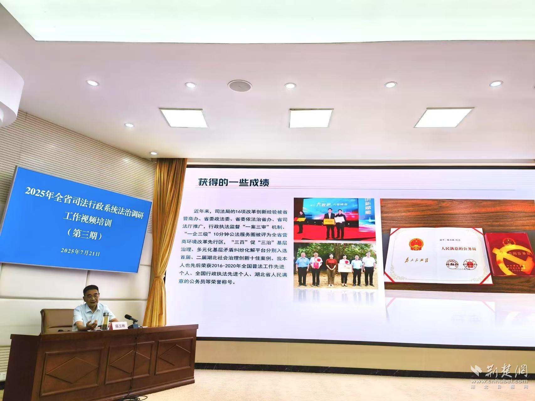 荆楚网(湖北日报网)讯(通讯员 江诗炜)为进一步提升司法行政队伍服务保障支点建设的能力,7月21日下午,省司法厅举办2025年全省法治调研工作第三期视频培训。本次培训邀请谷城县人民调解中心党委书记陈玉林围绕《发挥法治优势 聚力支点建设》作专题辅导。
