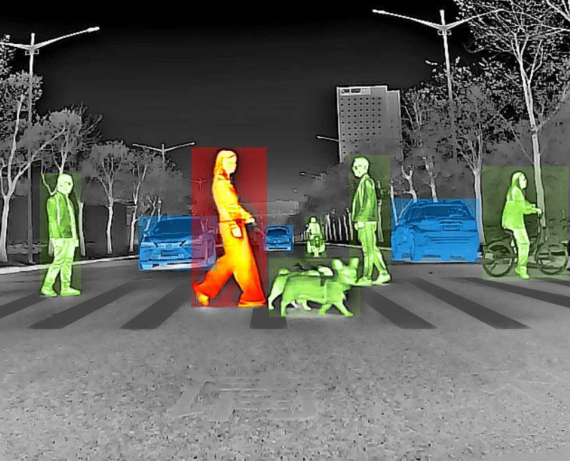 高德红外旗下轩辕智驾的车载红外芯片设备探测实况图。(受访单位供图)