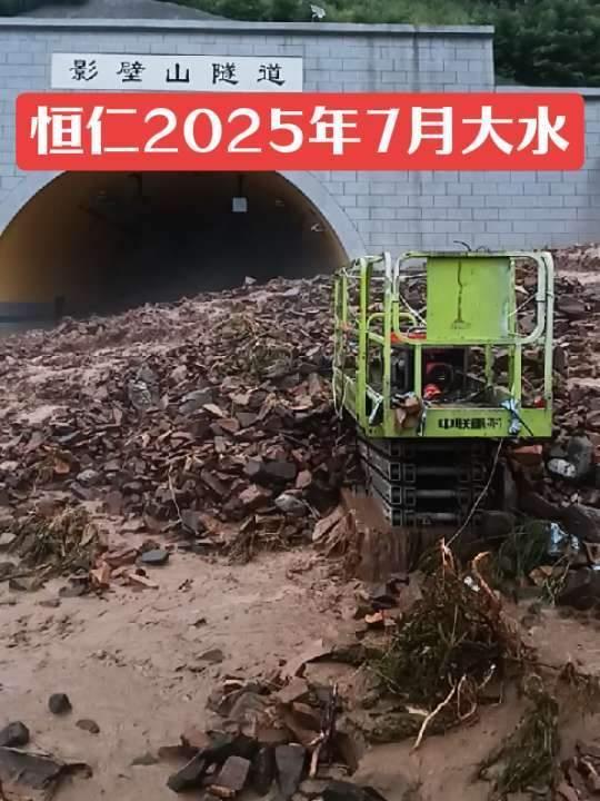 视频画面显示,隧道口右侧有水流从山体上奔流而下,部分岩石和泥土被冲到了隧道口路面上,现场没有看到有车辆或人员被埋。