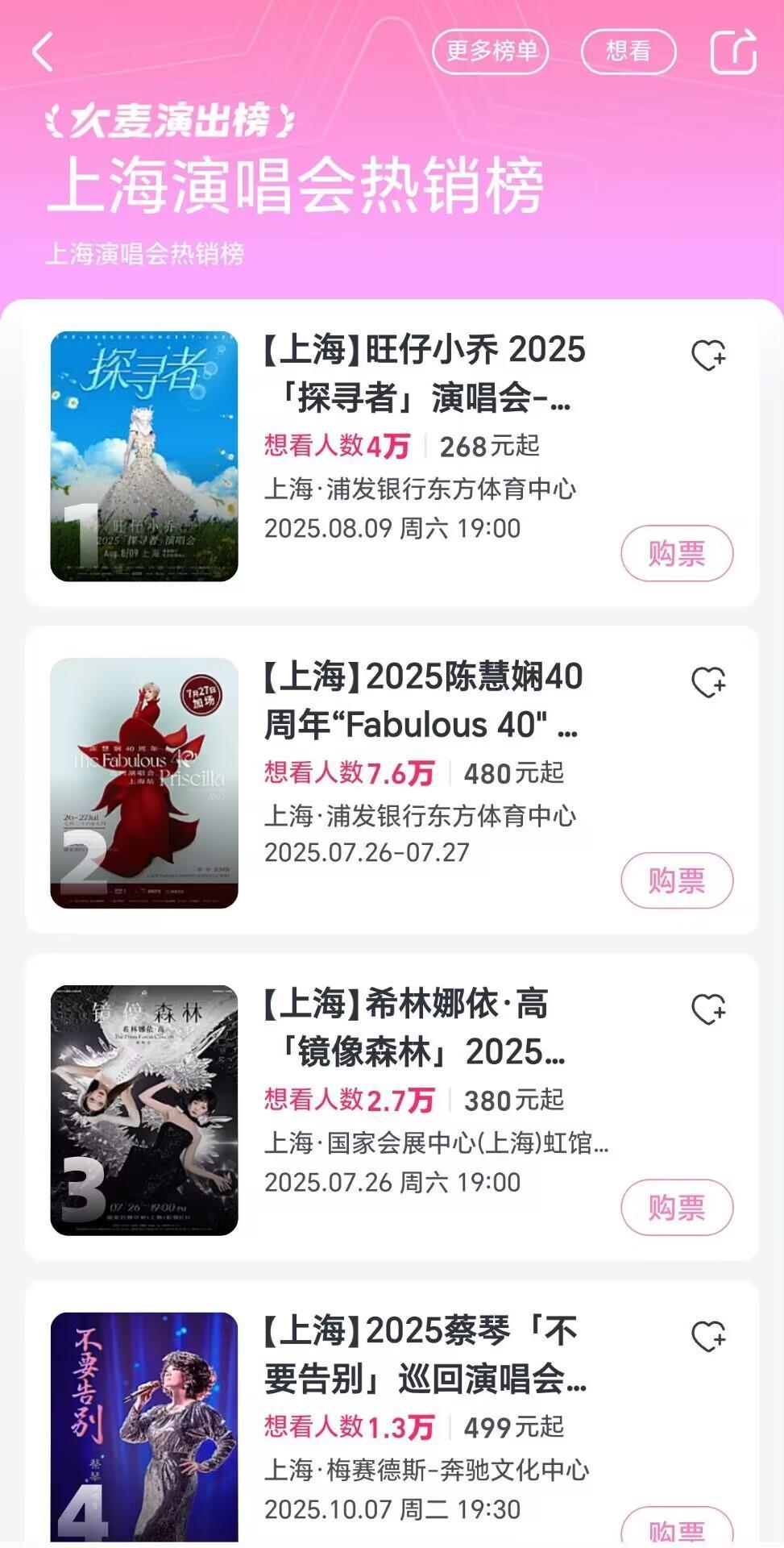 7月21日,极目新闻记者在购票平台看到,“旺仔小乔”的演唱会最低票价为268元,最高票价为968元。目前268元看台到768元内场的票档缺货,仅剩768元看台票和968元内场票在售。该演出已有4万多人标记了“想看”,位列上海演唱会热销榜第一,超过了不少明星的演唱会。