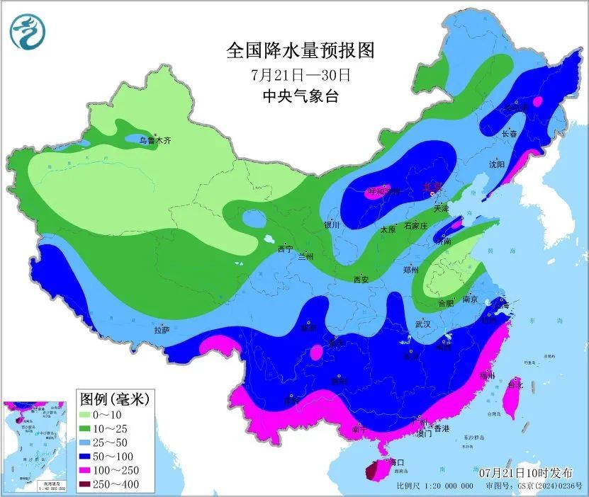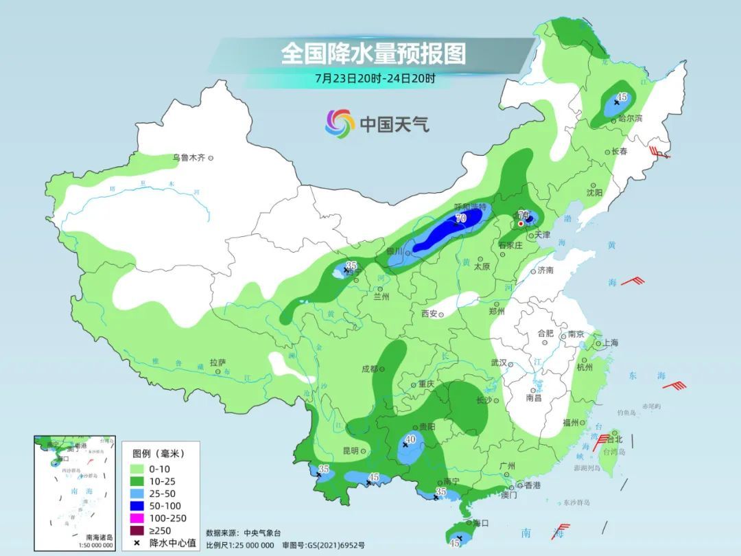 后天,强降雨就会明显向西收缩、强度减弱。与此同时,随着高空槽东移,北方还会自西向东迎来新一轮强降雨。中央气象台预计,23日至25日,西北地区东部、华北、东北地区等地有小到中雨或雷阵雨,局地大到暴雨。