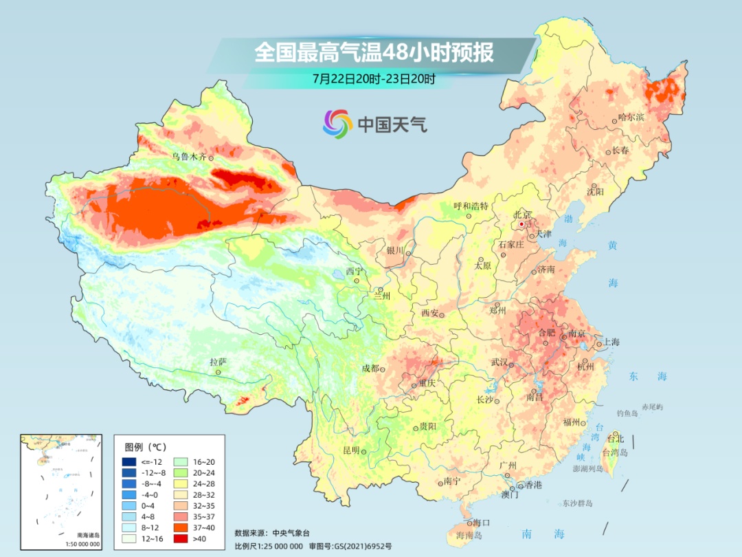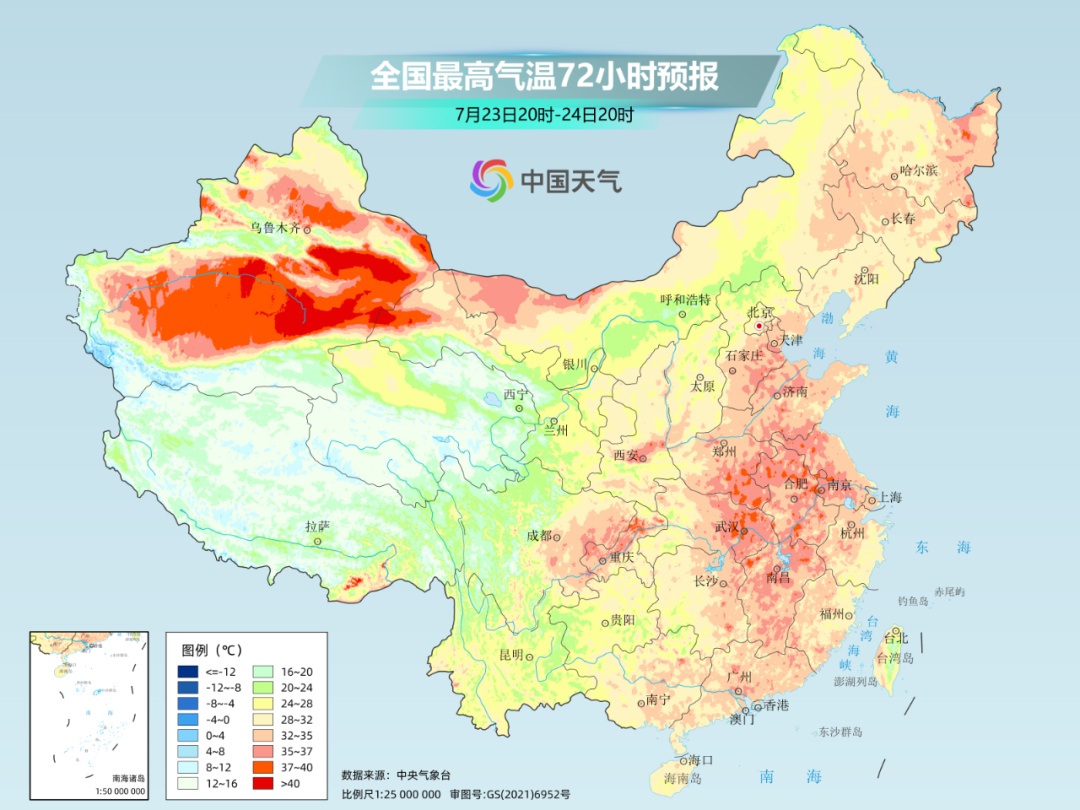 明天将会迎来大暑节气,高温也依然很有“存在感”。本周,中东部的高温主要出现在黄河到长江一带,特别是受副热带高压控制的江淮等地,则是持续高温闷热。常年大暑节气,长江中下游一带都是一年中最闷热的时段,即使最高气温在35℃上下,结合较大的湿度,体感可能也会超过40℃。